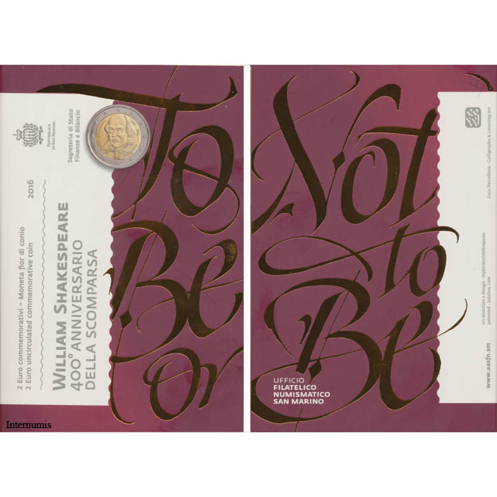 3-SM2E2016Shak_unc Veröffentlicht 12. November 2022 bei 700 × 700 in San Marino 2 Euro 2016, **400. Todestag von William Shakespeare**, (ANK.193) Erh. Blister Weiter →