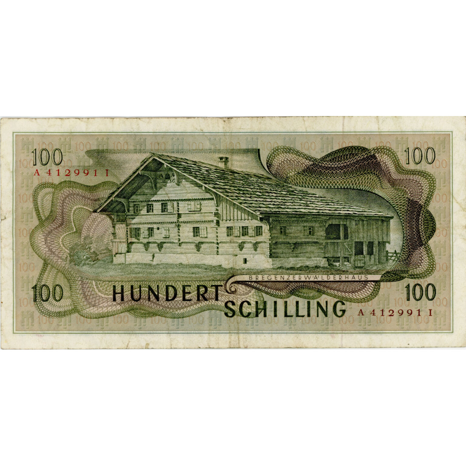 2-KK252ReversIVI Veröffentlicht 27. März 2023 bei 1770 × 1770 in Österr.Nationalbank – 100 Schilling 1969, 2. Auflage, Vs. A.Kaufmann, Rs.Bregenzer Waldhaus, (KK 252/P146a) Erh. III/IV ← Zurück