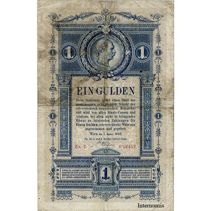 K.K.Reichs-Central-Casse – 1 Gulden 1.1.1882, (KK.108 / ANK.147/P.A153) Erh. IV+