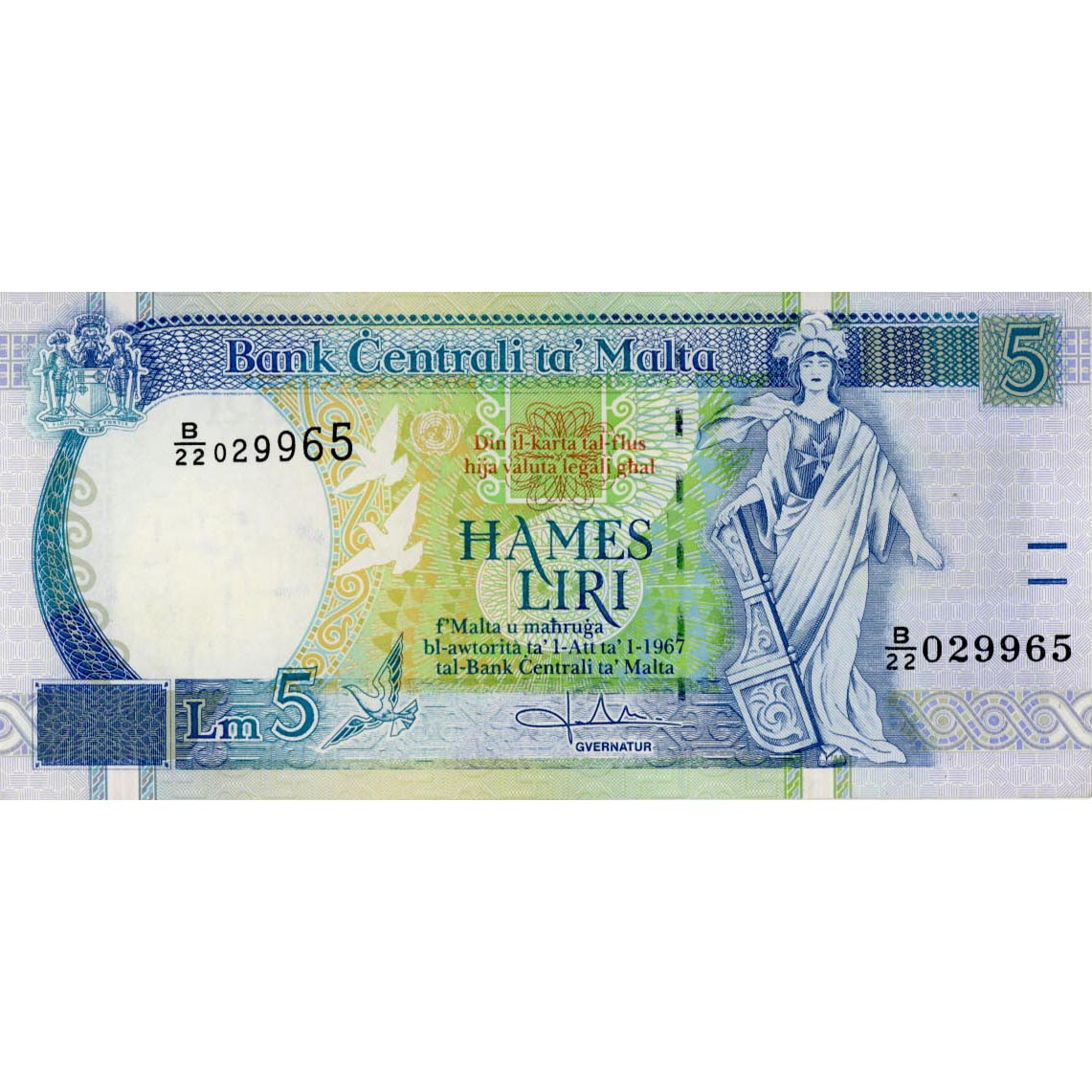 Malta – 5 Liri L.1967 (1994), Us.Francis Vasallo, (P.46b) Erh. XF+