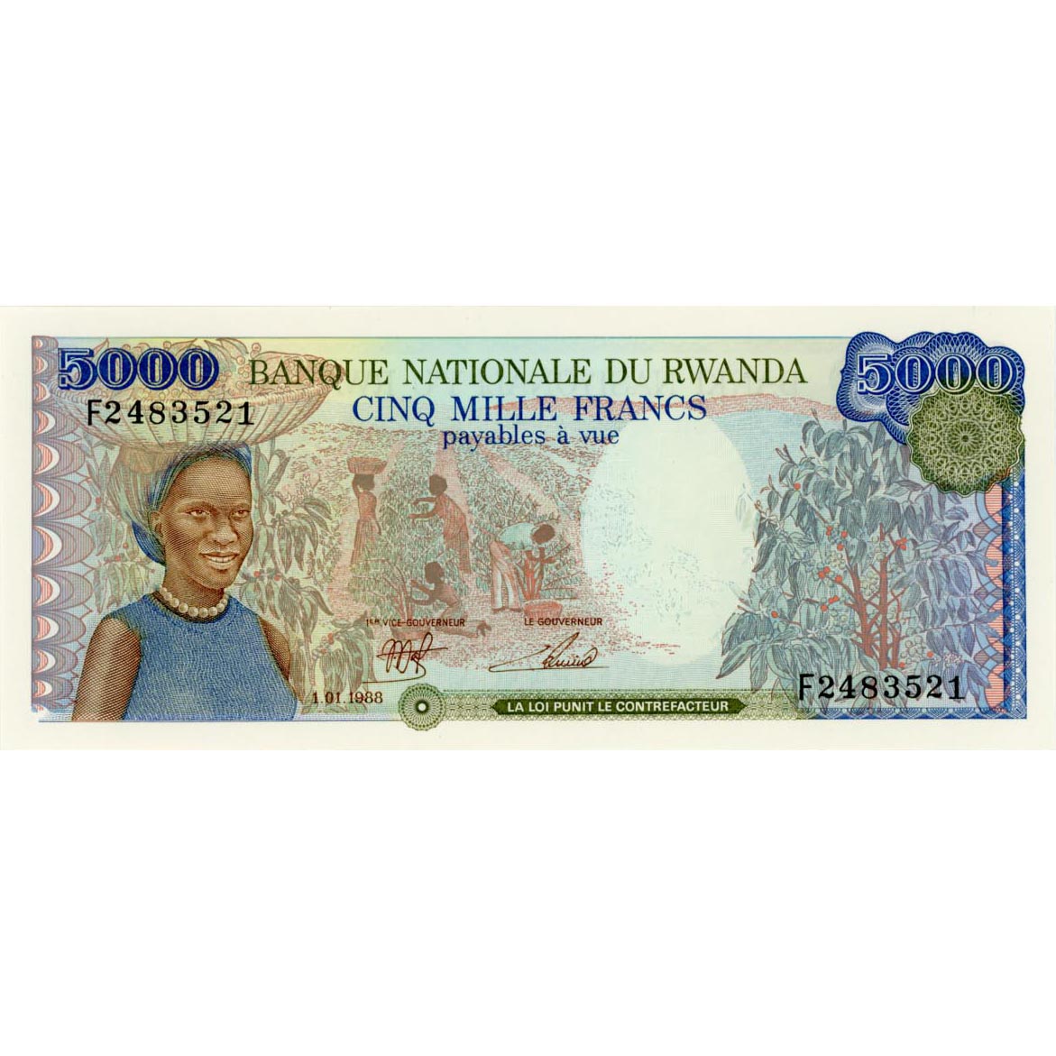Ruanda – 5000 Francs 1.1.1988, (P.22a) Erh. UNC