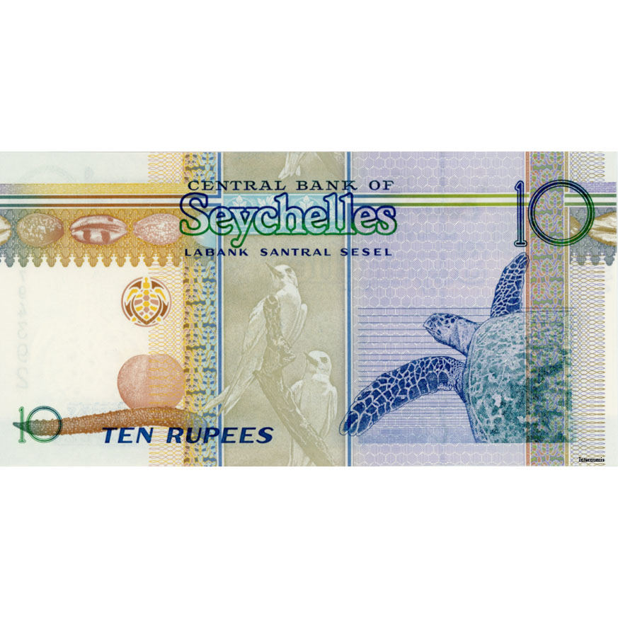 Seychellen – 10 Rupees ND(1998), (P.36a) Erh. UNC