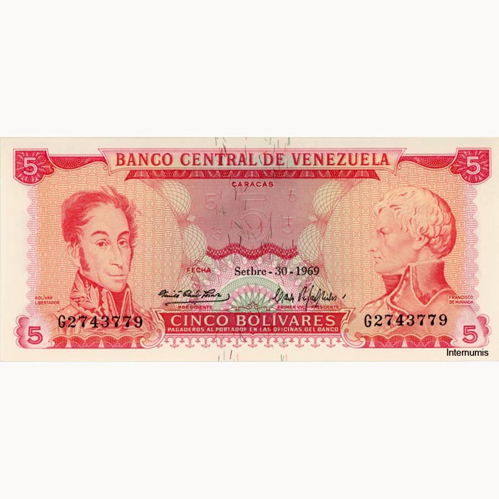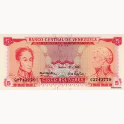 Venezuela – 5 Bolivares 30.9.1969, (P.50c) Erh. AU