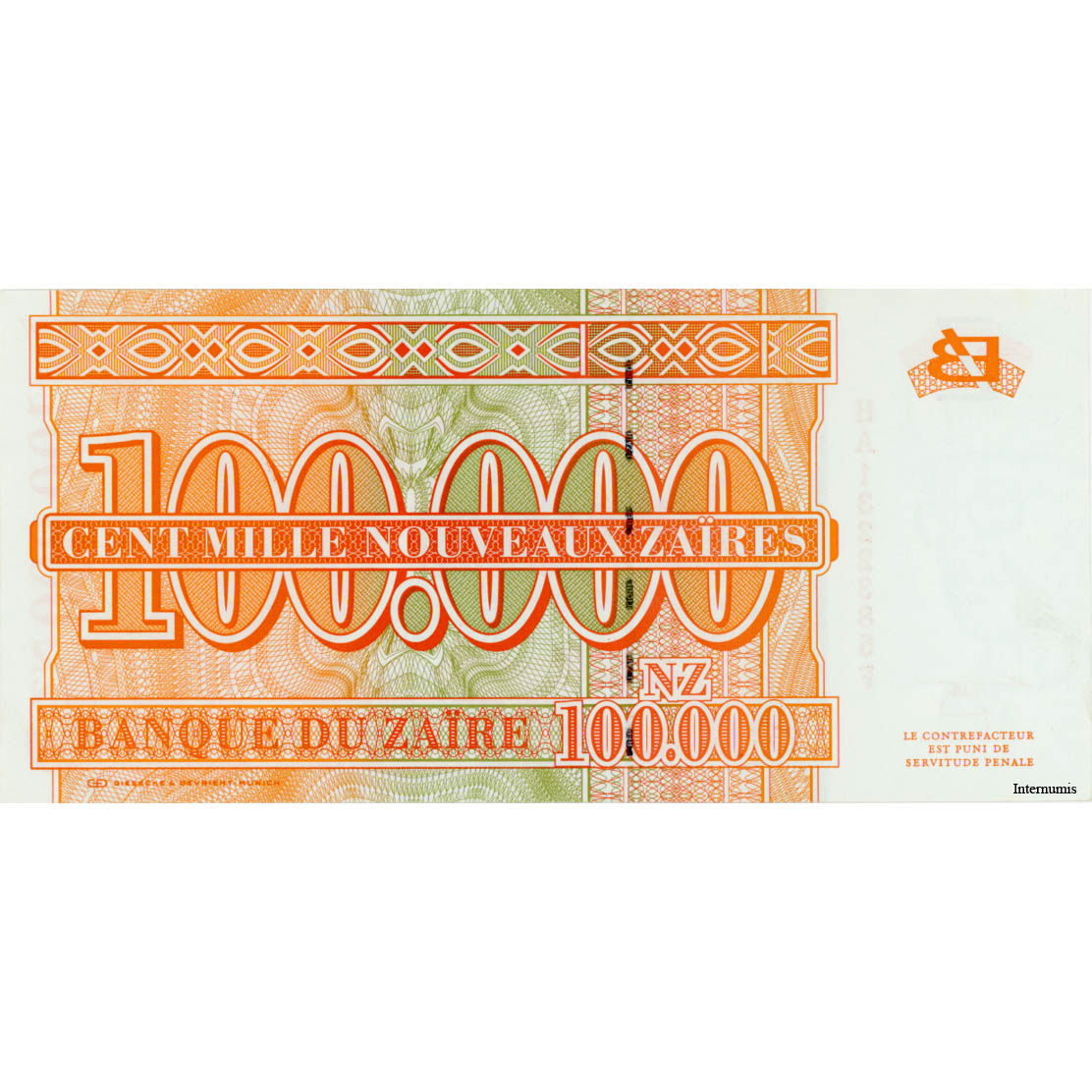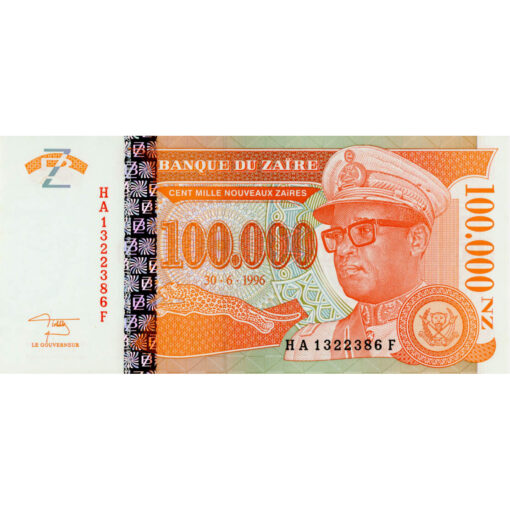 Zaire – 100.000 Nouveaux Zaires 30.6.1996, G&D, (P.76a) Erh. UNC