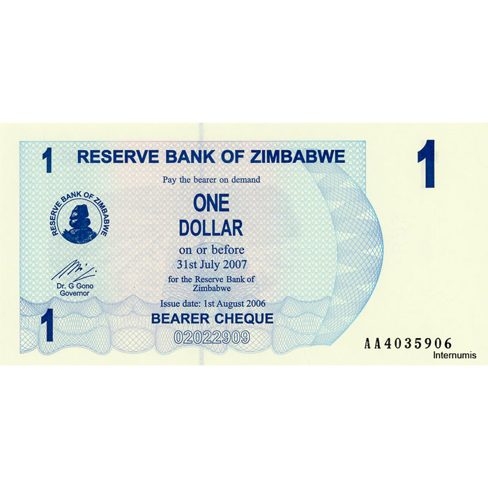Zimbabwe – 1 Dollar 1.8.2006, (P.37) Erh. UNC