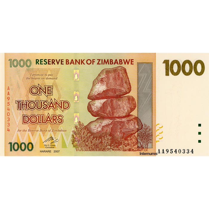 Zimbabwe – 1000 Dollars 2007, (P.71) Erh. UNC