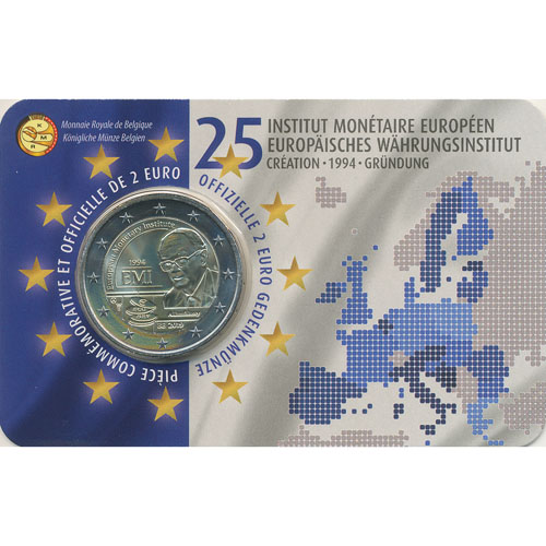 Belgien – 2 Euro 2019, 25-jähriges Bestehen des Europäischen Währungsinstituts (EWI), Frz. Ausgabe, (ANK.- / KM.-) Erh. Coincard, stgl.