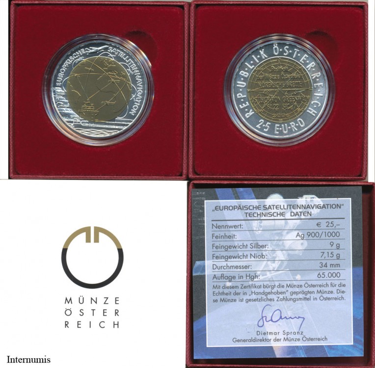 Auflage 65.000 Stück, Ø 34 mm, Bimetall: 900 Ag,Niob