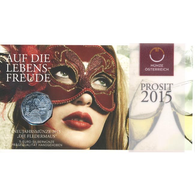 5 Euro 2015, **Neujahrsmünze Fledermaus**, (ANK.27a) Erh. hgh./Blister