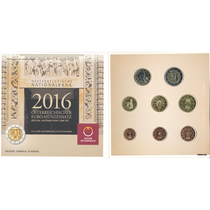 Österreich – offizieller Kleinmünzensatz 2016,** 200 Jahre ÖNB**, Erh. Blister/hgh.