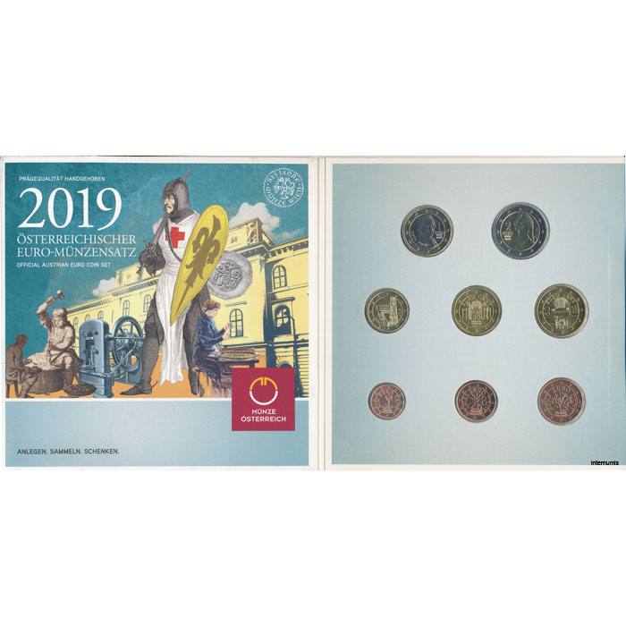 Österreich – offizieller Kleinmünzensatz 2019,**825 Jahre Münze Wien**, Erh. Blister / Hgh.