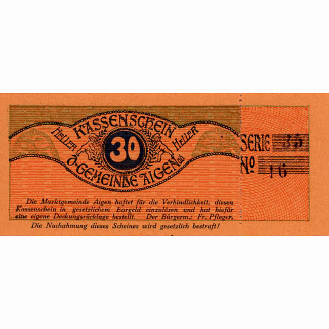 Kategorien: Notgeld, Notgeld Österreich, Gemeinden A - B, Aigen(OÖ)