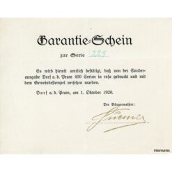 Dorf an der Pram(OÖ) – 30,40,50 Heller o.D., P.rot, Dr.bds.rot, Gmst.Typ 1 u.3, Aufl.400 Serien mit KN. und Garantieschein(gefaltet), (KKN.S129)II)d) Erh. I