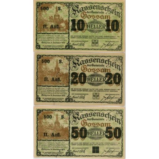 Gossam(NÖ) – 10/50,20/50,50/50 Heller 1920,neue Wertzahl schwarz, II.Auflage ,500 Serien , (KKN-S252)II)a) Erh. I