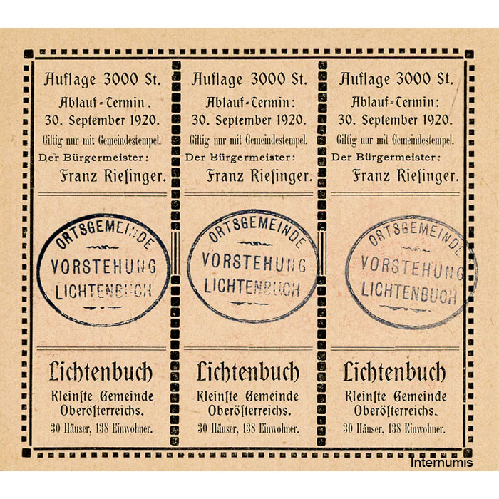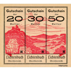 Lichtenbuch(OÖ) – 20,30,50 H. o.D., (-1920) , Kuponform, P.rosa, Bst.H, Gmst. schwarz, Aufl.3000 St., (KKN.S519)I)b)H) Erh. I