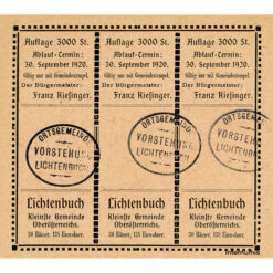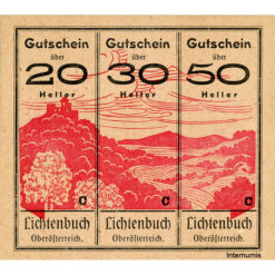 Lichtenbuch(OÖ) – 20,30,50 H. o.D., (-30.9.1920), Kuponform, P.rosa, Bst.C , Vs.20h uur, 30h nnr, Gmst. schwarz, Aufl.3000 St., (KKN.S519)Ib)C) Erh. I