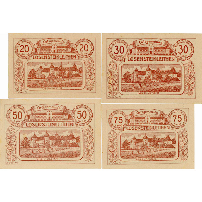 Losensteinleithen(OÖ) – 20,30,50,75 Heller o.D., P.weiß, Bs.Dr.braun, Bst.B, (KKN.S567)I)b) Erh. I