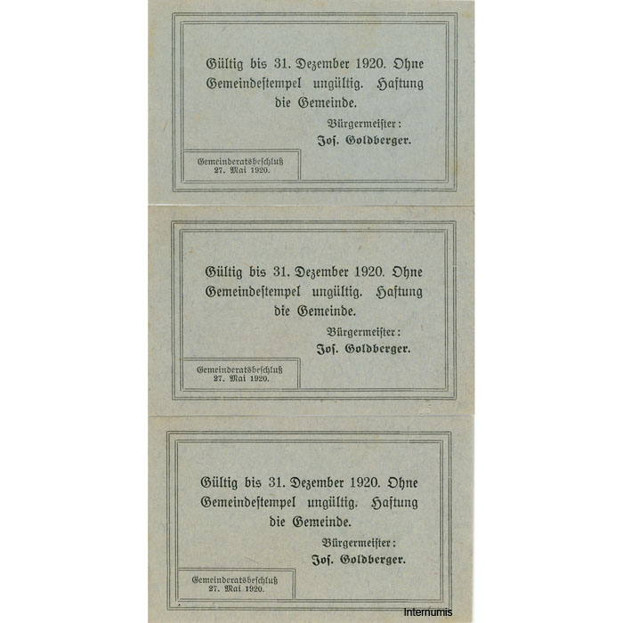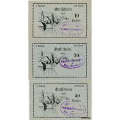 Prambachkirchen(OÖ) – 10,20,50 Heller 27.5.1920 – 31.12.1920,Papier blau, 4. Auflage 400 Serien, (KKN.779)VI)a) Erh. I/I-
