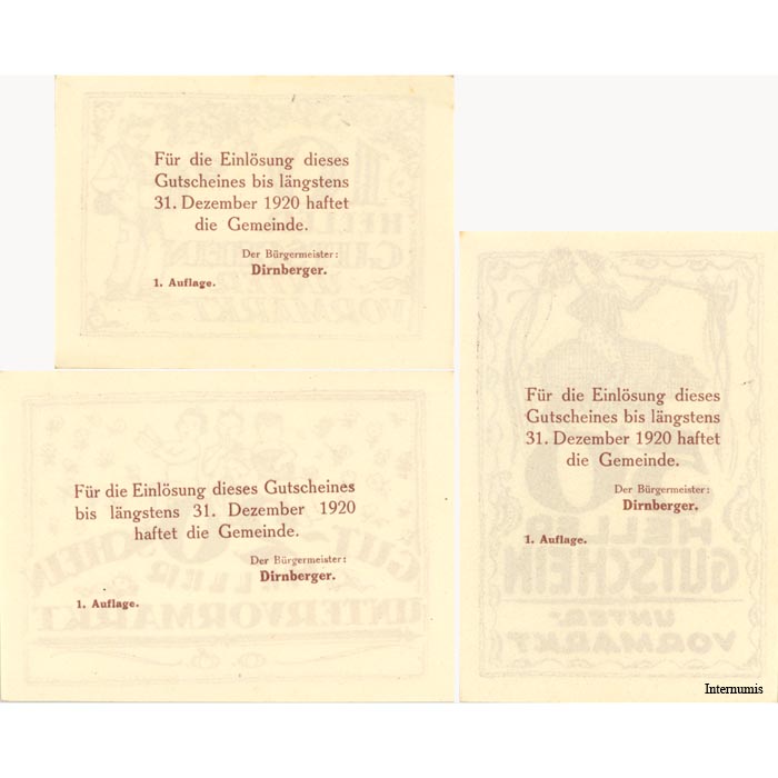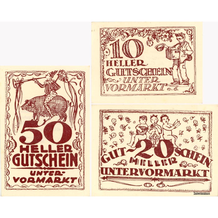 Unter-Vormarkt(OÖ) – 10,20,50 Heller o.D., Papier weiß, Druck Bs.braun, 1. Auflage (KKN.S1099)I)b) Erh. I/I-